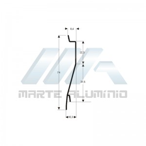Perfil extrudado de alumínio para VENEZIANA, com peso linear de 0,231kg/m...